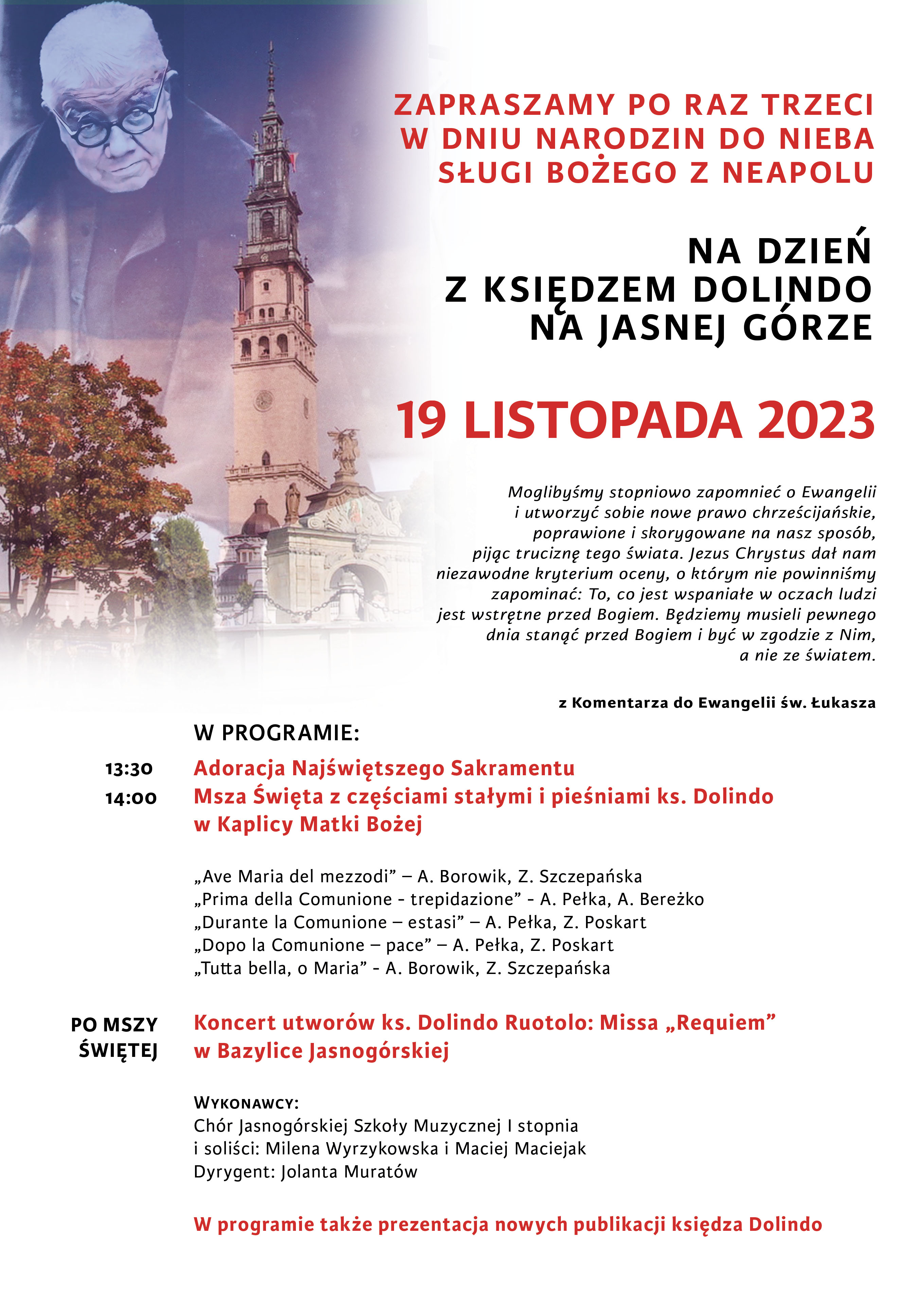 Zapraszamy serdecznie na Jasną Górę na "Dzień z księdzem Dolindo".